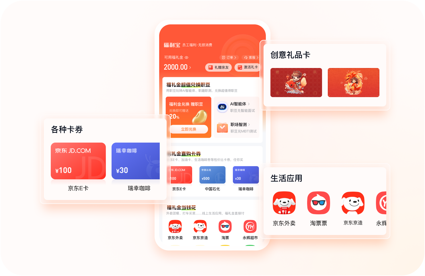 灵活省心:日常/生日/节假日,支持企业专属礼品卡、定制联名