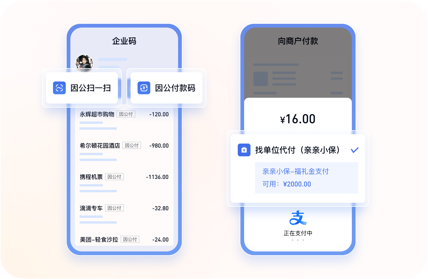 不改变员工日常消费习惯前提下,解决企业因公支付全场景