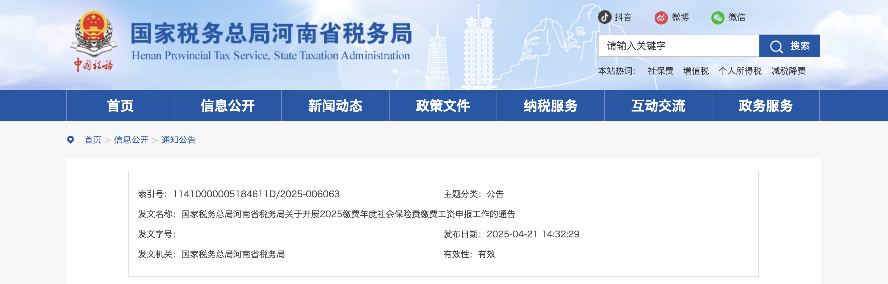 三、河南省:5月1日起开始展2025缴费年度社会保险费缴费工资申报